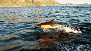 Further out to sea we went and already we had been given a fantastic show. We were anxious to see what the ocean had in store for us. Once more we were treated to a spectacle, we reached the open sea we heard the word “DOLPHINS” shouted across the boat. Now okay, we’d already seen Dolphins but these were one of my favourite species, Dusky Dolphins (Lagenorhynchus obscurus). When they said the name, it went over my head what they were until I saw them and realised. It was so exciting to see around 2000 of them all jumping, flipping and spinning beside the boat just as the Common Dolphins had done earlier. Then after around 5 or so minutes of them following the boat, we came to a halt and one of the photographers, from National Geographic, jumped over the side with the Dolphins. I watched two more follow and I asked if we could get in, we were already in our wetsuits and ready to and the skipper Brock said “Yeah sure”.