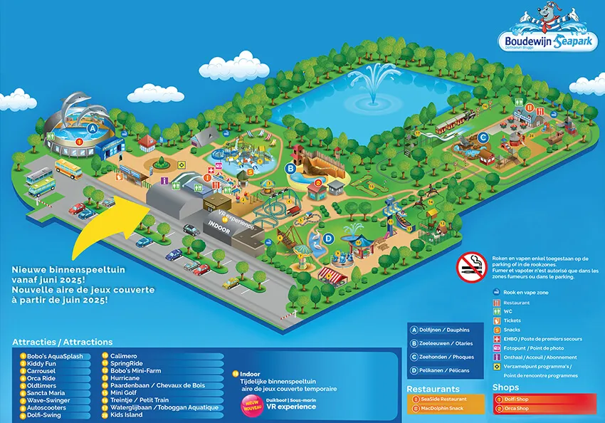 Bekijk hier de plattegrond van Boudewijn Seapark en kies alvast je eerste attractie!