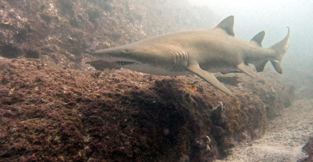 You’d be forgiven for thinking that sand tiger sharks are the same as tiger sharks, but they are actually two very different species. The tiger shark (Galeocerdo cuvier) are commonly found in tropical waters and have been known to grow over 4 metres long, making them much bigger than the sand tiger shark. Their name comes from the dark, vertical stripes found on their body, which fade as the sharks mature.