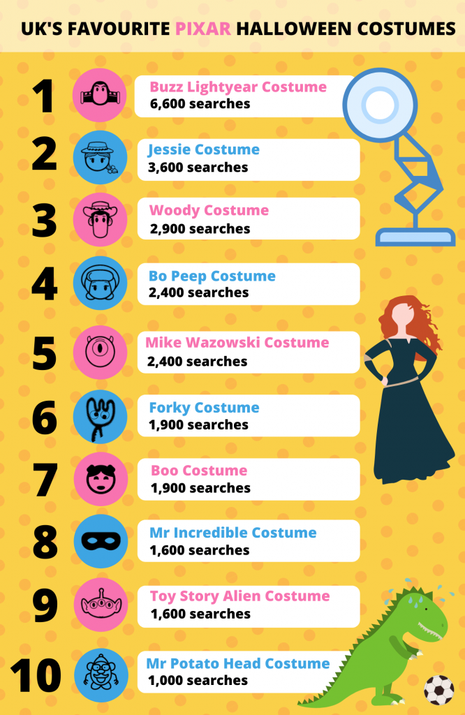 Pixar and its hopping lamp have been responsible for some of Disney’s most recognisable characters over the years, so it’s no surprise its franchises still account for hundreds of great Halloween costumes. Let’s take a look at the top 10 most popular outfits.