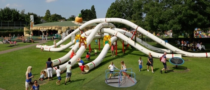 350 speeltoestellen en attracties, gericht op actief vermaak. Bekijk hier wat er allemaal te doen is in Linnaeushof.